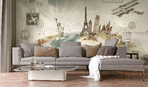 Только представьте, что приходя домой, вместо скучных стен, Вы созерцаете Эйфелеву башню или панораму небоскрёбов Нью-Йорка…Воздушные шары, паровозы, самолёты, старинные марки наполняют дизайны атмосферой прошлых столетий. Новая коллекция – это не просто городские сюжеты. Прежде всего, это «Art» - каждый архитектурный сюжет с узнаваемыми достопримечательностями пронизан художественной авторской задумкой, дополнен орнаментами и узорами, необычными эффектами и приёмами.